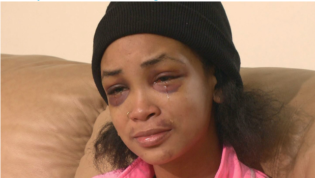 The beating, she says, all started because she accidentally sat on someone’s hamburger. Because of that mistake, she suffered two black eyes, two broken teeth, fractures on her face and fractures on her face.