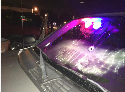 The shots rang out at approximately 11:15 p.m. local time as several hundred people gathered on West Florissant Street. The St. Louis Post-Dispatch reported that at least 15 shots were heard as protesters, police officers, and media members ran for cover.