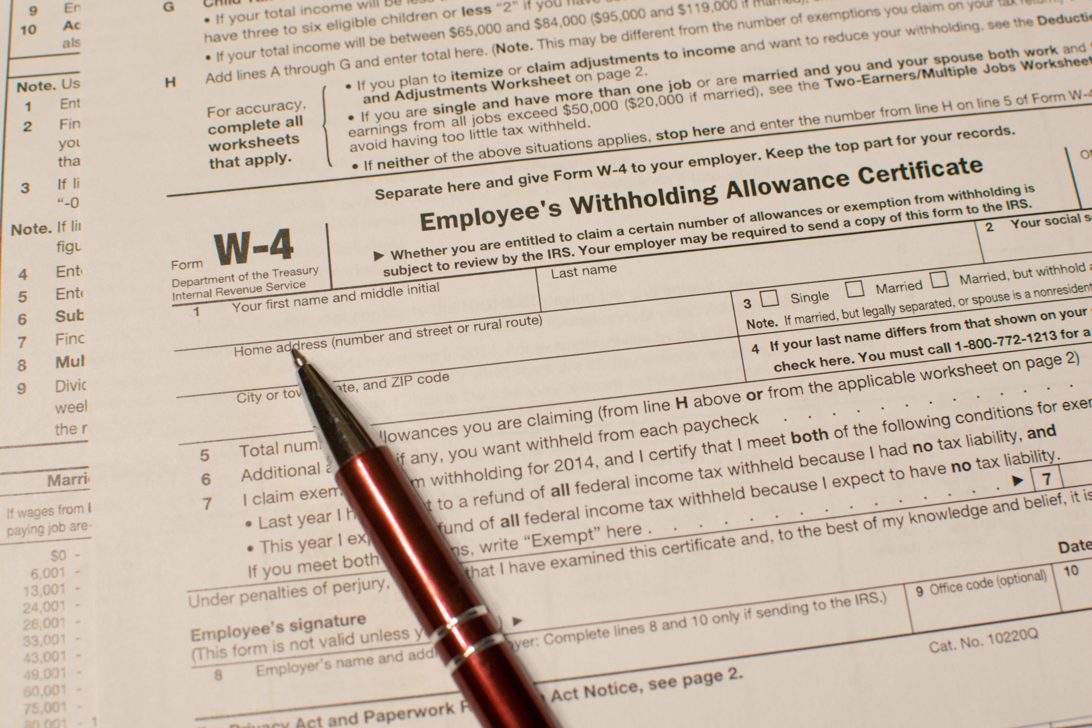 New Job. When you start a new job your employer will ask you to complete Form W-4, Employee’s Withholding Allowance Certificate. Your employer will use this form to figure the amount of federal income tax to withhold from your paychecks. Be sure to complete the Form W-4 accurately.