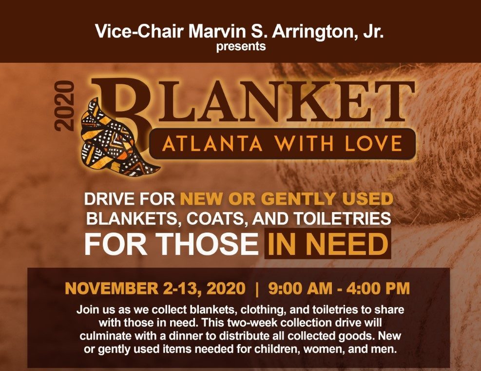 As part of the “Blanket Atlanta With Love” drive, bins will be placed at Fulton County facilities to gather blankets, coats, clothing, and toiletries from November 2 through Nov. 13.
