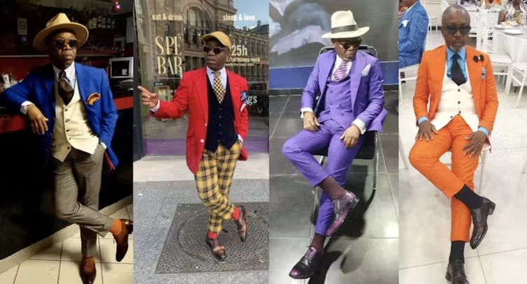 Jocelyn Armel, aka the Bachelor, is one of the most talked-about ‘Sapeurs’ in the media. He’s known for his outings, interviews and above all for his promotion of the ‘Sapeurs’ and Africa. Author provided