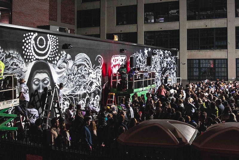 Secret Walls is a visceral 90 minute paint battle, blank canvases, blank walls, no sketching, no pencils, all freestyle competition that gets voted on by the crowd and guest judges. Then over that 90 minutes, you watch two blank white canvases slowly color themselves in and shade themselves in. And it’s, it’s sort of like being at the Chef’s Table of your favorite restaurant. You’re smelling the paint, you’re watching the process, and you’re getting to experience art live. We’ll have amazing DJs as art meets high energy. It’s a really unique, exciting night out.
