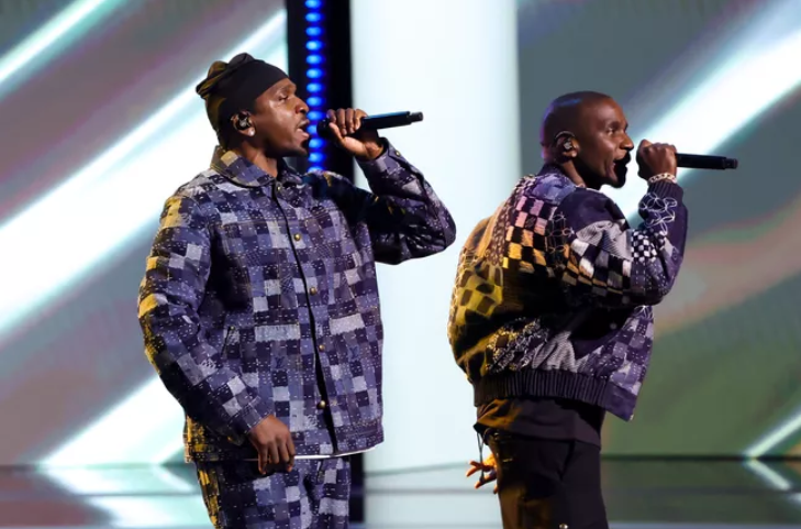 The Thornton Brothers, Pusha T and No Malice, known together as the group Clipse, performed alongside John Legend for a live rendition of their track “The Birds Don’t Sing” from their album Let God Sort Em Out.