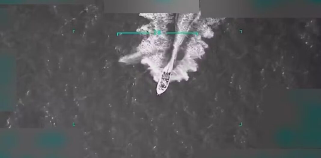 The moment before an alleged drug boat was hit in a targeted U.S. strike. @realDonaldTrump/Truth Social